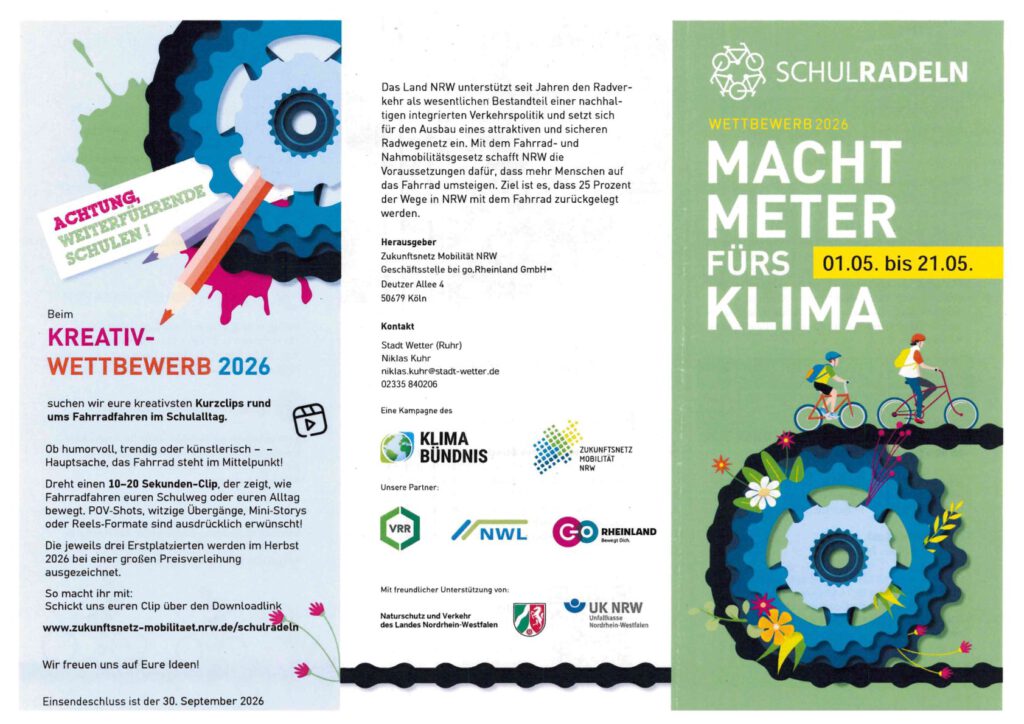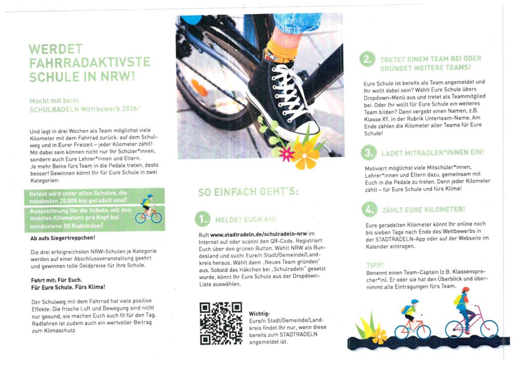 Und wir und vor allem Sie können stolz sein – unsere Schule wurde als eine der mit dem sichersten Schulweg in Nordrhein-Westfalen bewertet.