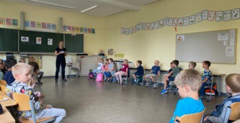 „Lass meinen Arm los!“, „Gib mir mein Etui zurück!“ oder „Hey! Ich möchte das nicht!“ – Neben dem richtigen Einschätzen verschiedener Situationen zeigte die Pädagogin Nina Remmert den Kindern auch, wie sie sich gegen Sticheleien und Hänseleien behaupten können. In Rollenspielen wurden dazu das selbstbewusste Auftreten und das Nutzen wiederkehrender und eindeutiger Aufforderungen geübt. Zusätzlich reflektierten die Kinder ihre eigenen Fähigkeiten und erhielten von ihren Mitschülerinnen und Mitschülern Rückmeldungen zu ihren Stärken.