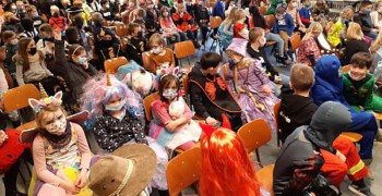 Am Freitag, dem 25.02.22 haben wir Karneval gefeiert. Statt Schülerinnen und Schülern waren da plötzlich kleine Hexen, Piraten, Einhörner, Polizisten, Clowns, Ninjakrieger, viele andere toll verkleidete Kinder und auch Zauberer in unserer Schule.