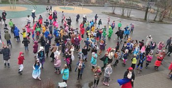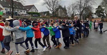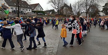 Anschließend wurde auf dem Schulhof ausgiebig getanzt. Die Polonaise machte allen Kindern viel Spaß.
