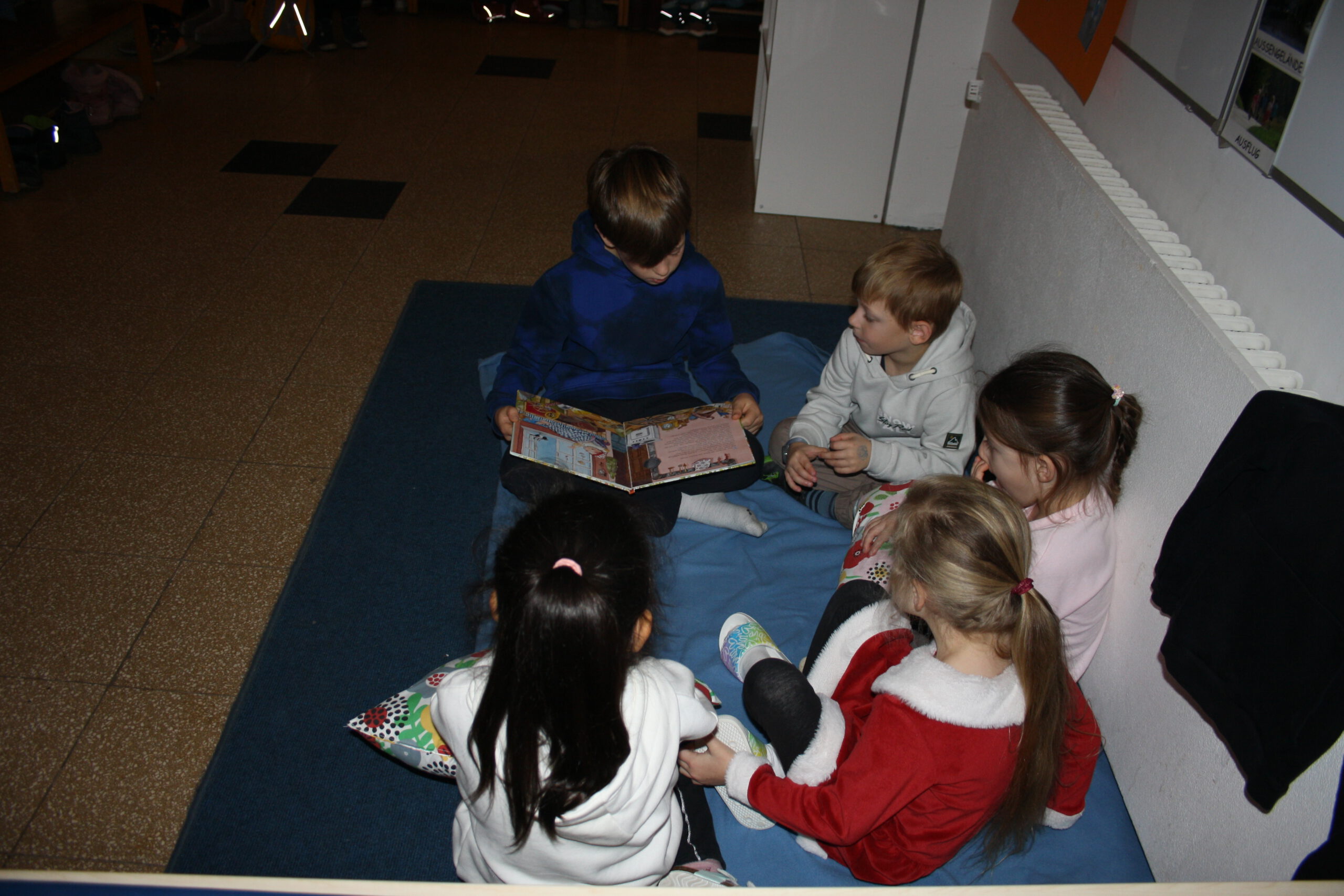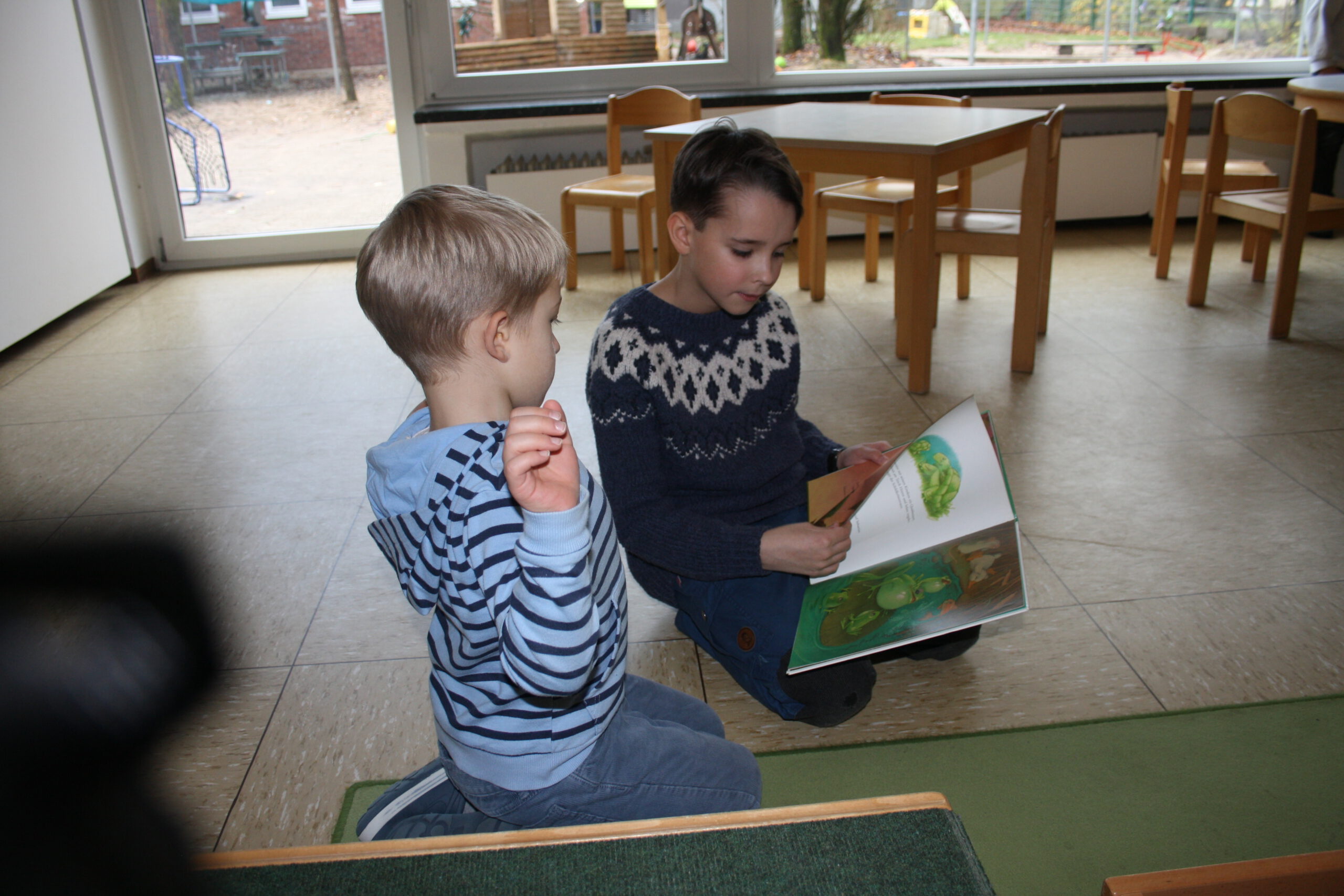 Am Donnerstag, dem 20.11.25 waren acht Viertklässler und Viertklässlerinnen in Begleitung von Frau Sommerfeld in der katholischen Kindertageseinrichtung St. Gerwin in Grundschöttel zu Besuch. Im Rahmen des Vorlesetags am darauffolgenden Tag hatten sich die KiTa-Kinder bereits Bilderbücher ausgesucht, aus denen ihnen die Viertklässler vorlesen sollten. In kleinen Gruppen verteilten sich je ein Viertklässler / eine Viertklässlerin mit einigen Kleinen in verschiedenen Räumen. Mit großen Augen und gespitzten Ohren haben selbst die Dreijährigen gespannt zugehört. Immer wieder zeigten aber auch die Schülerinnen und Schüler den Kindern die Bilder, stellten Fragen oder erklärten, was auf den Bildern zu sehen war. So war es für alle am Ende ein gelungenes Vorlesen, dass wir sicher noch einmal wiederholen werden.