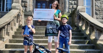 Heute ist die Grundschule Grundschöttel am Rathaus gleich dreimal für ihre Erfolge beim diesjährigen Stadtradeln ausgezeichnet worden: Frau Meißner hat den Preis der besten Schulklasse für die Waschbärenklasse entgegengenommen. Die 3a darf sich über einen Zuschuss zur Klassenkasse von 100 € freuen. Als beste Schülerin und bester Schüler der Stadt wurden Frieda und Fredrik aus der Eulenklasse ausgezeichnet. Sie bekamen ein Sicherheitsfahrradschloss der Firma ABUS geschenkt. Herzlichen Glückwunsch!