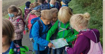 Am letzten Schultag vor den Herbstferien haben wir mit allen Kindern einen Wandertag durchgeführt. Jede Klasse erhielt eine Wanderkarte mit einem „Rundweg“, auf der die Route eingezeichnet war. Die Klassen 3 und 4 wanderten ca. 5 km, die Klassen 1 und 2 ca. 3,5 km. Der Startpunkt für „die Großen“ war der Sportplatz an der Köhlerwaldstraße bzw. das Rechenzentrum, sie wurden mit dem Bus dorthin gebracht. „Die Kleinen“ liefen von der Grundschule los.