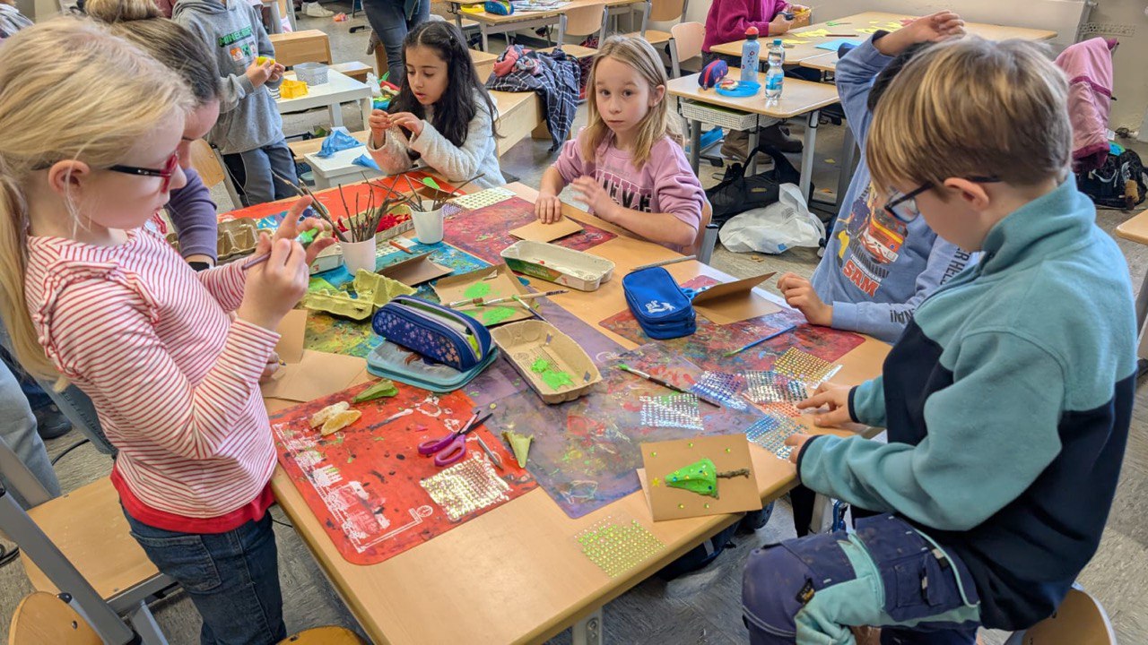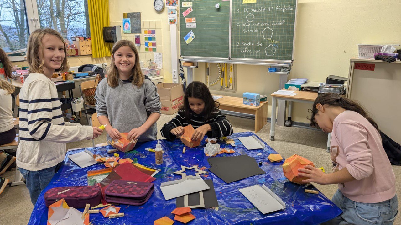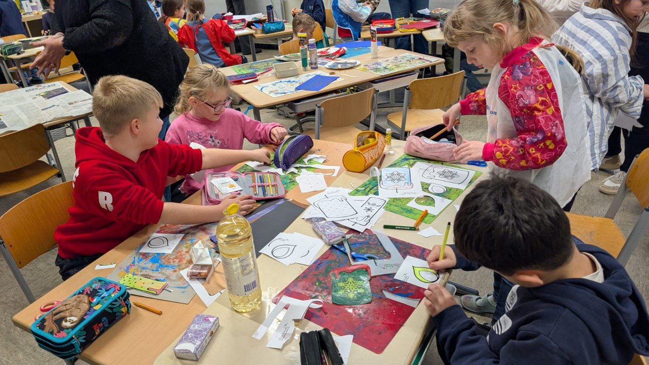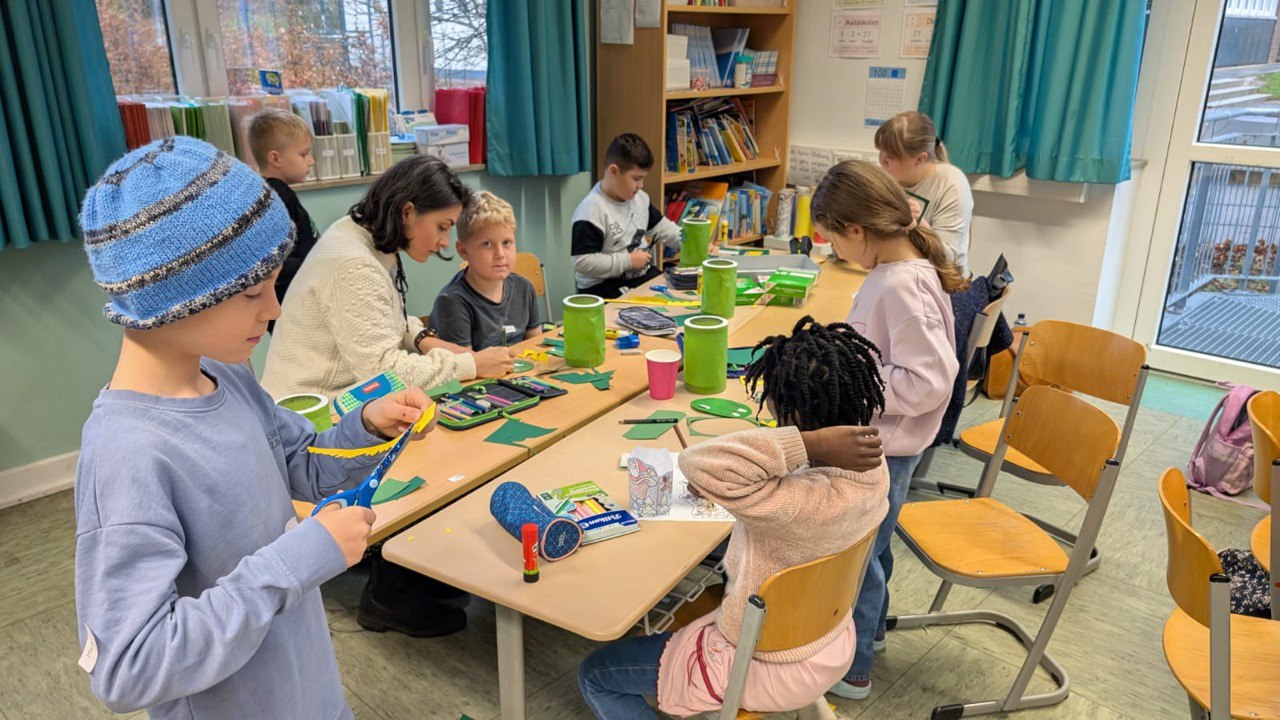 In der Weihnachtszeit wird es in der Grundschule besonders gemütlich. Überall duftet es nach Tannenzweigen und Plätzchen – und natürlich wurde beim Weihnachtsbasteln wieder fleißig gearbeitet, um unsere Schule pünktlich zum ersten Advent zu schmücken. Beim Basteln von bunten Sternen aus Papier, liebevoll gestalteten Weihnachtskarten, Lichtern oder Tannenbäumen und Wichteln aus Holz halfen die Kinder einander, tauschten Ideen aus und erlebten, wie schön es ist, gemeinsam etwas zu gestalten. Am Ende des Basteltages waren alle stolz auf ihre Werke, die nicht nur das Klassenzimmer schmücken, sondern auch die Vorfreude auf Weihnachten noch größer machen. Ein besonderer Dank gilt allen Eltern und Großeltern, die uns beim Basteln wieder tatkräftig unterstützt haben.